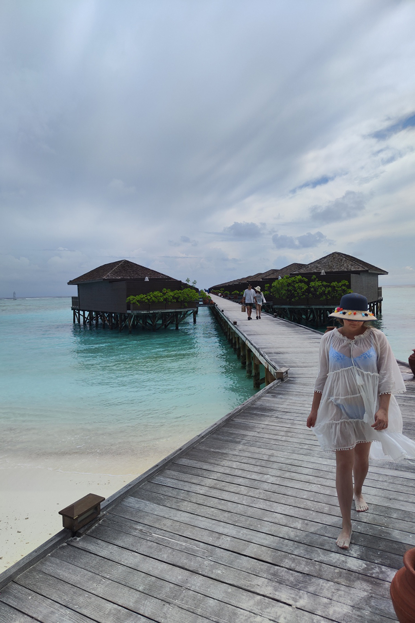 „U Meeru Island Resort & Spa 4+* smo došli malo poslije 9 i iskoristili cijeli dan maksimalno. Čim smo zakoračili na otok i vidjeli tu ljepotu (a i prije zbog dupina), osjetili smo neopisivi osjećaj u sebi, sav umor od putovanja je nestao. Osoblje nas je dočekalo sa bubnjevima i iznenađenjem dobrodošlice koji se opet, napominjem, ne može riječima opisati nego se samo može doživjeti na licu mjesta. Sjeli smo kod recepcije gdje su nas dočekali hladni ručnici koji su se osjetili po menti i prirodnim ledenim čajem sa nekim travuljama unutra.
